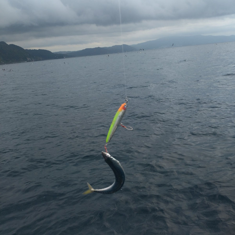 鳥山見つけてトップゲーム。釣れるのは微妙なサバでした(^^;